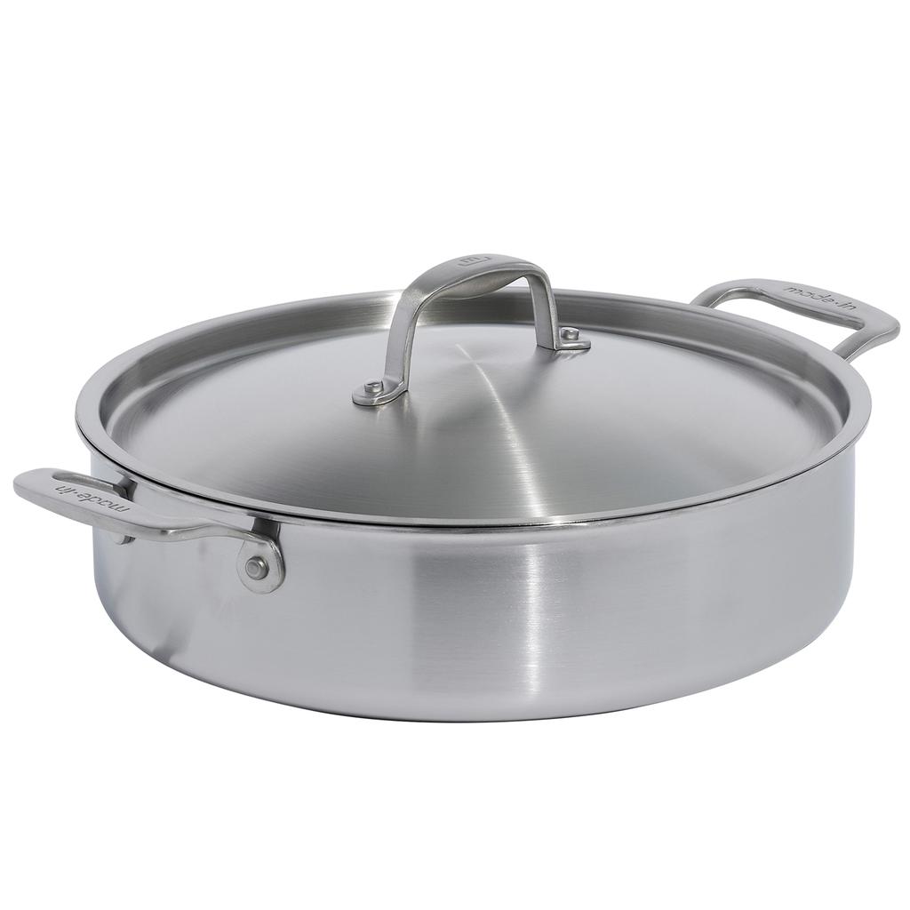 Made In stainless-steel cookware is made in Italy out of 5 layers of clad metals, featuring a pure aluminum core for rapid, uniform heat conduction. The cooking surfaces and the exterior are stainless steel, as are the proprietary, stay-cool handles. Made In stainless-steel cookware performs superbly on gas, electric, magnetic induction, and ceramic stovetops, and is oven-safe to 800° F. It's also dishwasher safe.