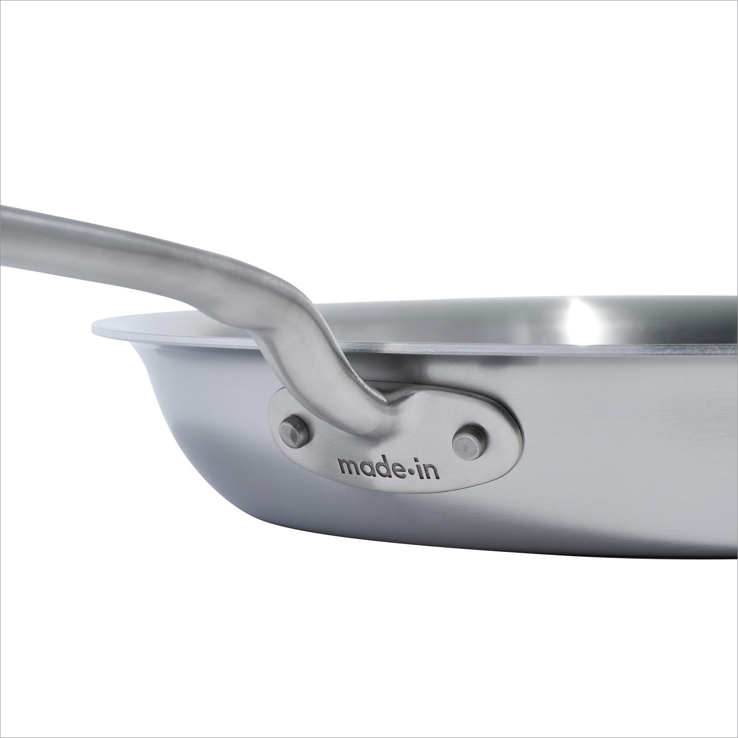 Made In stainless-steel cookware is made in Italy out of 5 layers of clad metals, featuring a pure aluminum core for rapid, uniform heat conduction. The cooking surfaces and the exterior are stainless steel, as are the proprietary, stay-cool handles. Made In stainless-steel cookware performs superbly on gas, electric, magnetic induction, and ceramic stovetops, and is oven-safe to 800° F. It's also dishwasher safe.