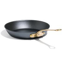 Designed in partnership with chef Tom Colicchio, this 11" carbon steel frypan recreates Colicchio's favorite pan, which he purchased from Zabar’s in the 1980s. After 18 months of product development and 3D scanning of Colicchio's actual, veteran frypan, this recreation emerged, made in Sweden of 2.5mm-thick carbon steel, with a pure brass handle. It's half the weight of cast iron but every bit as durable—so it seasons faster, responds quicker, and is rugged enough for your grill or open flame. This pan is oven-safe to 1200° F and naturally non stick, and performs beautifully on gas, electric and magnetic induction stovetops. Lifetime warranty from Made In against defects, hand wash only.