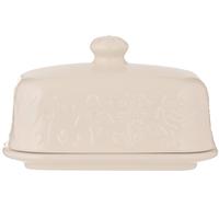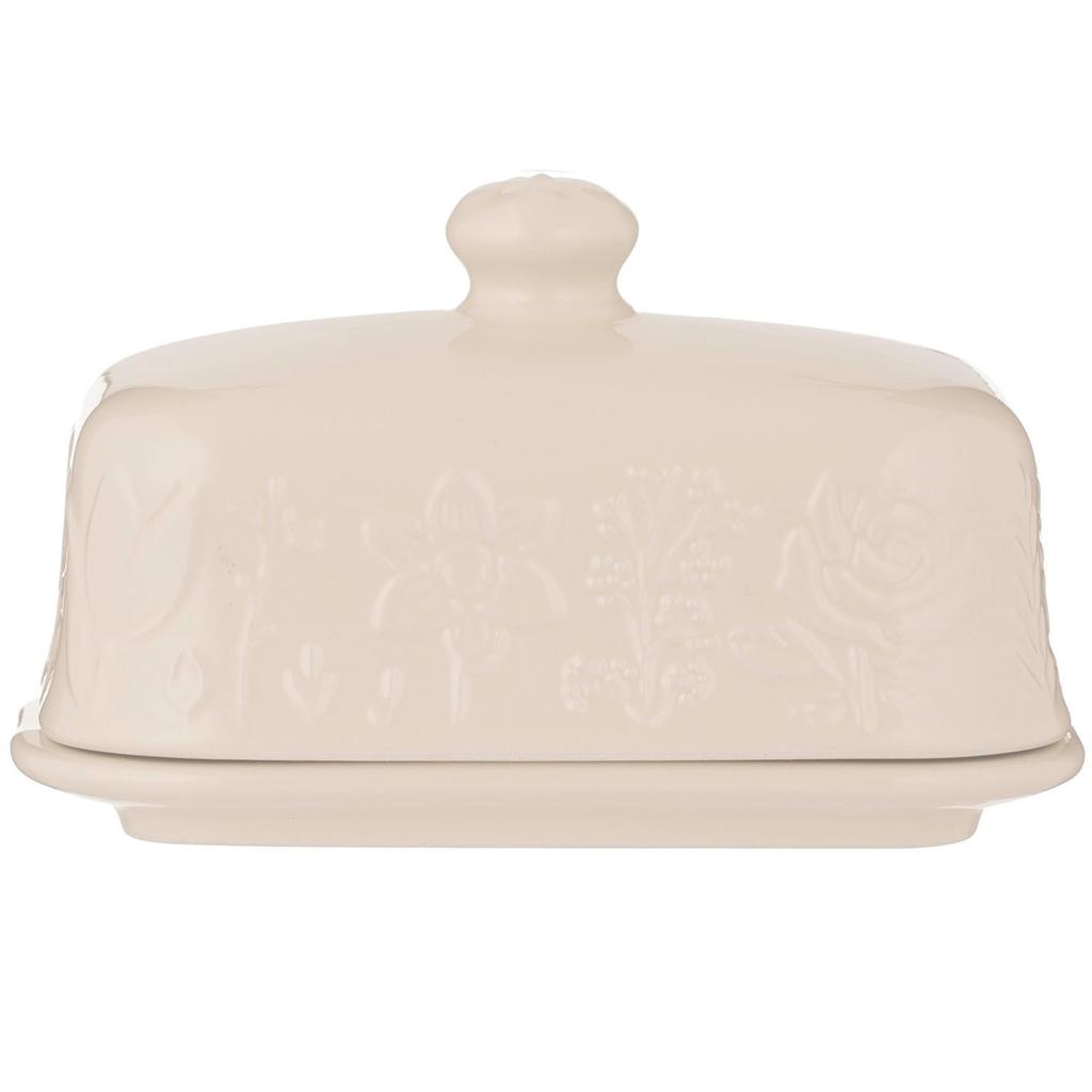 For well over 200 years, the Mason Cash company in England has been crafting beautiful ceramic pieces. Inspired by folk tales of the mid 19th century, the In The Meadow butter dish is intricately embossed with delicate florals and foliage. Practical enought for storing butter in the fridge and stylish enough to serve at the dining table, the In the Meadow butter dish measures 4.17" x 6.14" x 3.54" tall and will hold up to 500 grams of butter. The base of the dish features parallel ridges ensuring the block of butter stays securely in place. Made of rugged stoneware, the In the Meadow butter dish is dishwasher and microwave safe.