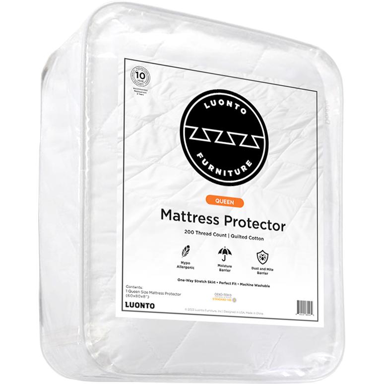 This 200 thread count, 100% cotton mattress protector features a custom mattress barrier protectant and is waterproof and hypo-allergenic. It's puff-quilted for added comfort and protection and features dual-band elastic for a tight fit. Machine washable.