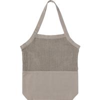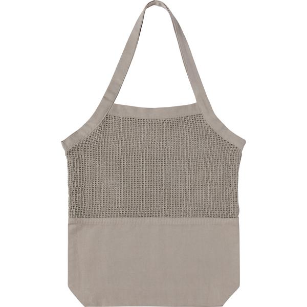 A great all-around tote bag that features a solid canvas bottom and a mesh string top. It's 100% cotton and measures 28" x 16". Machine wash in cold water and hang up to dry.