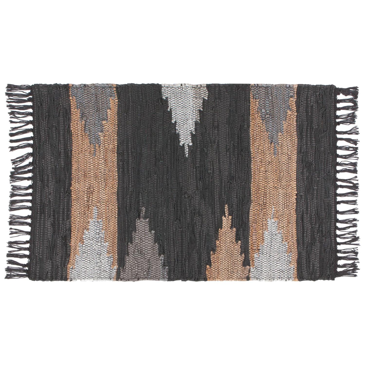 Made in the chindi style with up-cycled scraps of leather, the Mercer rug features fringed ends and measures 24" x 36".