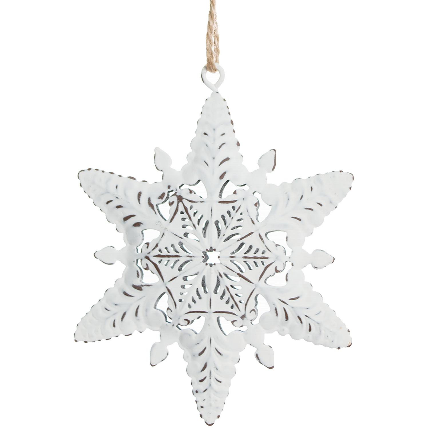 Choose from two styles of these antique-white, 3" metal snowflakes. Priced and sold individually; please specify your choices in the Order Notes field in your shoppiing cart.