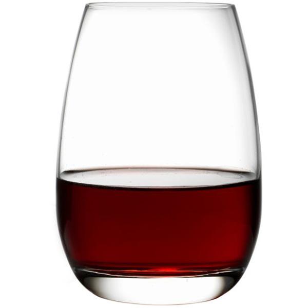 This simple and elegant stemless glass has a capacity of 15 ozs. and is suitable for both red and white wines. It stand 4" tall and measures 3.5" in diameter. Michaelangelo glassware is made in Italy by Luigi Bormioli and has a clarity and sparkle that sets it apart from ordinary glass. That's because it's made from an exclusive, lead-free glass formulation called SON.hyx that transmits light as clearly and fully as does pure quartz crystal. In addition, SON.hyx glass is stronger; over 100% more resistant to mechanical shock than ordinary glass, and more than one-third more resistant to chipping, thanks to the titianium in the glass formula. Not only that, SON.hyx glass shows no markings after 2,000 industrial washing cycles. Glasses made from this material may cost a little more than ordinary glasses, but they not only look better, but they will last longer, too.