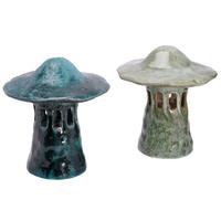 Lift off the top, and these ceramic lanterns have a holder for a votive candle or tealight. The lanterns look wonderful with candlelight shining out the windows. Made of durable stoneware, each 9"-tall lantern features a reactive glaze, ensuring that no two are identical. Choose from two colors, priced and sold individually. Please specify your color choices in the Order Notes field in your shopping cart.