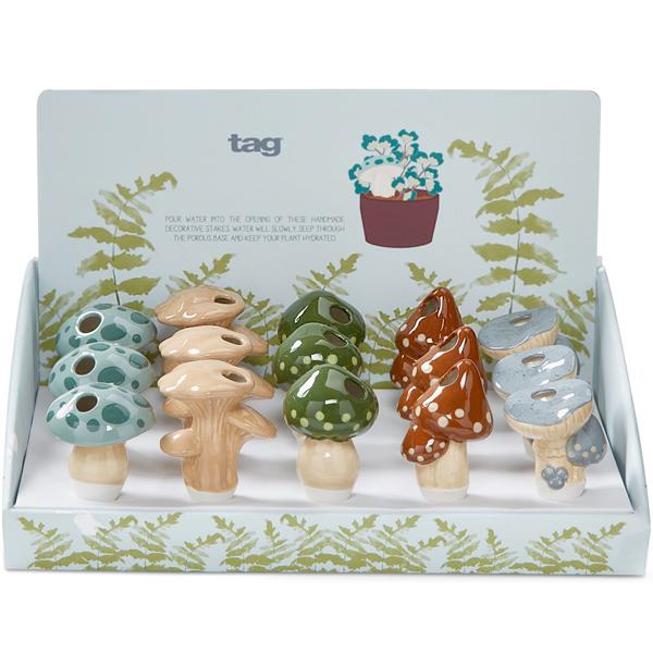 With these plant pets, you can decorate your pots and keep plants watered at the same time. Insert a plant pet into the soil and fill with water; the porous stake will allow water to slowly seep out into the dirt. Each mushroom measures 2.6" in diameter and 4" high. Choose from five styles, priced and sold individually. Please specify your choices in the Order Notes field in your shopping cart.