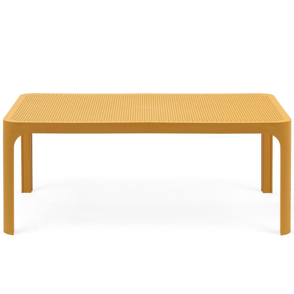 Outdoor furniture from Nardi, with its ultra-cool style and sun-drenched colors, lets you imagine that you're enjoying la dolcé vita at your Mediterranean villa. The Italian-designed-and-made Net coffee table is fashioned in one piece from weatherproof, recyclable, fiberglass polypropylene resins that are treated to resist the effects of UV rays, and it's colored all the way through, not just on the surface. The radial pattern of square perforations all across the top match Nardi Net seating, and a matte finish is pleasing to the touch. Non-slip feet help keep the table in place. The Net coffee table measures 39" wide, 24" deep and 16" tall, and it weighs a mere 14 lbs. No maintenance is needed; to clean, simply hose off or wash with soap and water.