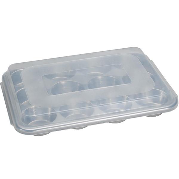 Made in the U.S. from even-heating aluminum, this classic muffin pan features a tight-fitting, snap-on plastic lid. The lid keeps cupcakes fresh for storage and safe for transport. The pure aluminum will not rust and the pan carries a lifetime manufacturer's warranty. To preserve the appearance, hand-washing is recommended; the dishwasher will cause discoloration that is cosmetic only, and will not affect performance.