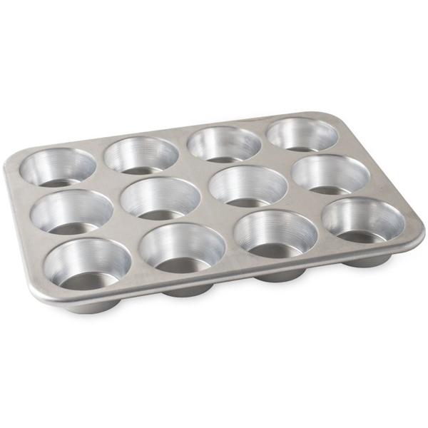 Made in the U.S. from premium aluminum that ensures even heat distribution for the best baking results. This muffin pan incorporates steel-reinforced rims to prevent warping. Each of the twelve cavities measures 2.5" in diameter to accommodate a standard paper baking cup. Lifetime warranty. To preserve the appearance, hand-washing is recommended; the dishwasher will cause discoloration that is cosmetic only, and will not affect performance.