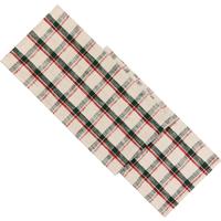 Featuring a gold metallic thread woven throughout, this classic table runner measures 13” x 72”. 98% cotton, 2% Lurex. Machine wash cold, hang or lay flat to dry.