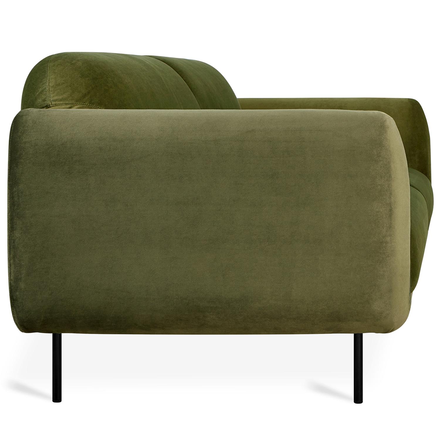 The epitome of mod luxury, the the Nord sofa invites you to sink in and stay awhile. With a retro, yet timeless shape, lush fabric, and black steel legs, the Nord sofa effortlessly blends ‘70s style with modern sensibilities. The kiln-dried wood frame features an elastic webbing suspension system that supports high-resiliency, polyurethane foam seat cushions. The powder-coated steel legs feature built-in levelers. The Nord sofa measures 86” wide, 36” deep and 30” high. Available to order in two other fabrics.