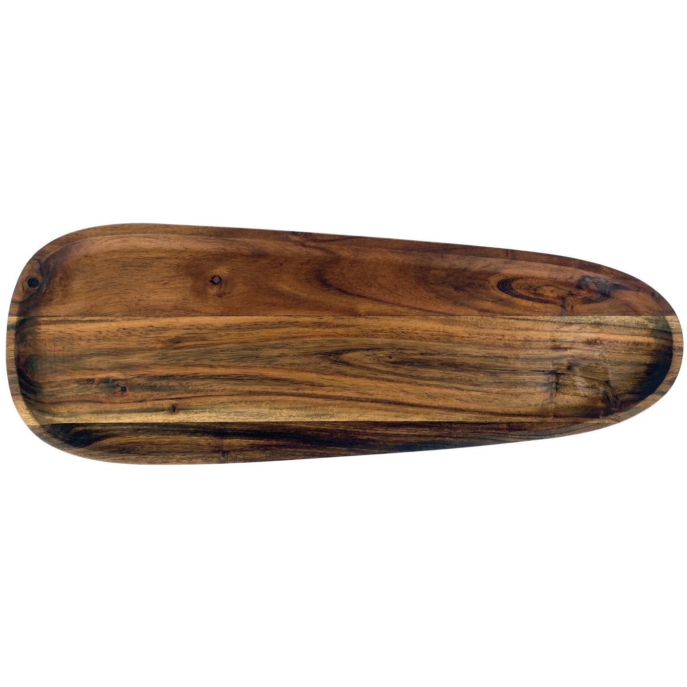 This teardrop-shaped tray is made of solid acacia and makes a lovely backdrop for food and drink. 21" x 7.5".