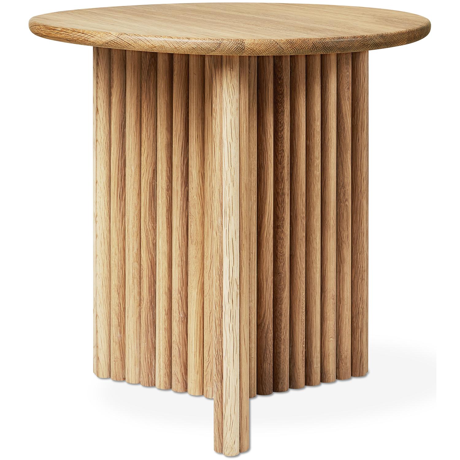 Neo?Classical forms get a contemporary treatment with the Odeon end table. From every angle, it gently juxtaposes a scalloped base with a smooth tabletop, and soft curves with chiseled lines. It’s made from solid white oak and given an all-natural, durable, matte, oil?based protector designed to highlight the beauty of natural wood. The Odeon end table measures 17” in diameter and 17” high. Available to order in other wood finishes and in painted finishes.