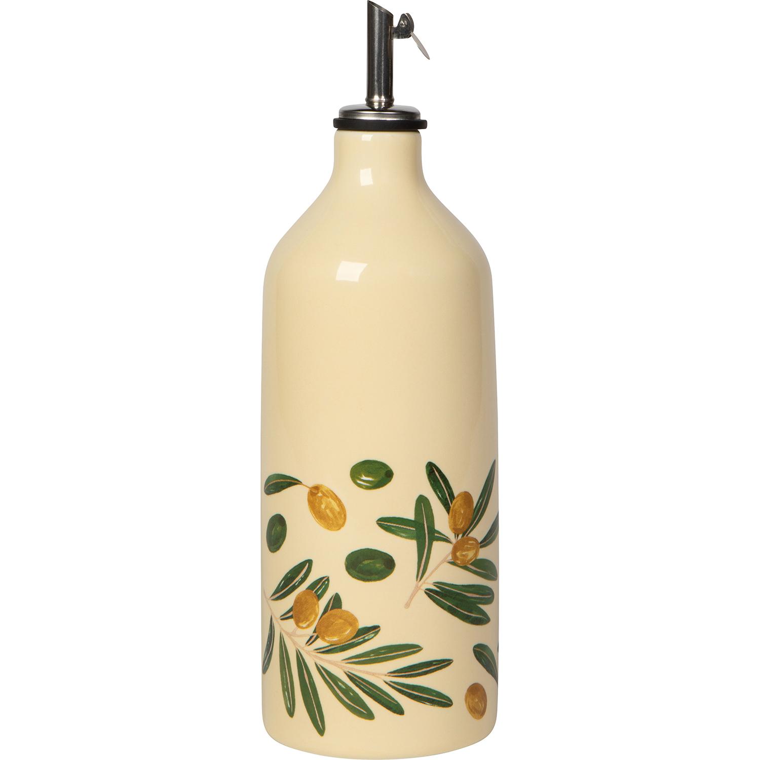 This rustic stoneware cruet features a tight-fitting, stainless-stopper and pour spout. It has a capacity of 16 ozs. and measures 3” in diameter and 7.7” high. Dishwasher safe.