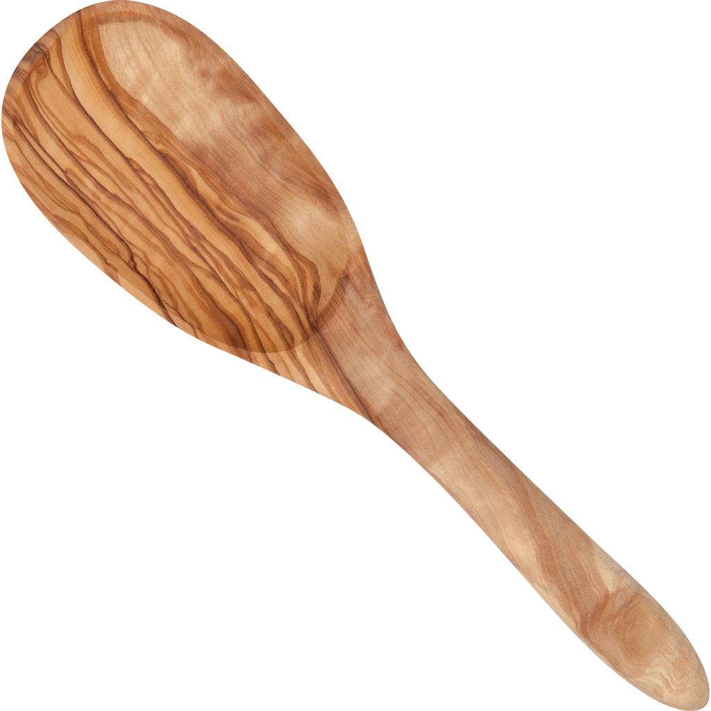 Made of dense, richly grained olive wood, this spoon measures 11" long and 3" wide.