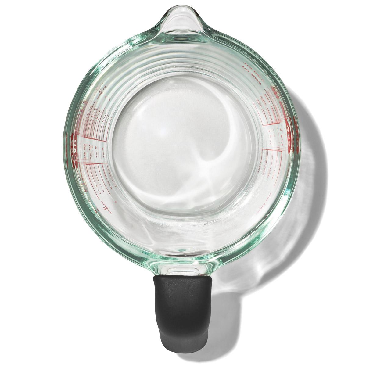 Measuring, pouring, storing, heating and reheating liquids is even easier with the OXO 4-cup glass measuring cup. Not only does it feature bold, easy to read standard and metric measurement markings, the cup is made of thermal shock resistant borosilicate glass so you can take the it from the fridge or freezer straight to the oven or microwave without fear of it shattering. That means you can use it to reserve pasta water, heat butter or coconut oil, or reheat a batch of leftover stock or soup. The silicone non-slip handle adds an extra layer of comfort and control as it remains secure in the hand, even if it gets wet. Microwave, ridge, freezer, and dishwasher-safe.
