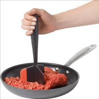 The OXO ground meat chopper features three wide blades designed for chopping and stirring ground meat right in the pan. One blade has a silicone edge that is perfect for scraping the pan edges. The rounded shape of the blades allows them to easily reach in corners of pans and the space between the blades helps prevent uncooked meat from getting trapped. The soft, comfortable handle is non-slip for control while cooking, the durable construction is tough enough to break apart partially defrosted meat and the materials are safe for non-stick cookware and are dishwasher safe. It's also great for frozen juice concentrate, tomato sauce, crumb topping and more!