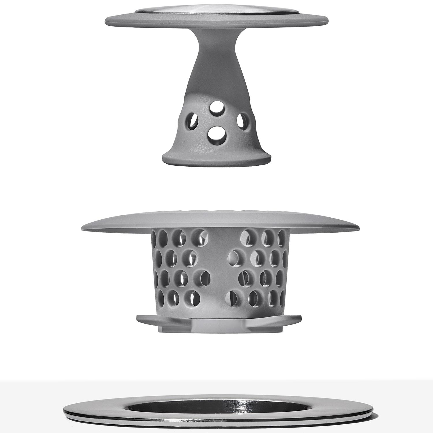 The OXO drain protector makes cleaning the shower easier, neater and more pleasant than ever. Constructed in two pieces, the base goes into your drain and the topper follows. To remove, just lift the topper from the base, no reinstallation is required. The two-piece design catches hair without blocking water flow, and with the flexible silicone catching cone, removing hair from your shower drain has never been swifter. The OXO drain protector fits in standard 1.25-in to 1.8-in (3.2-cm to 4.57-cm) diameter bath drains.