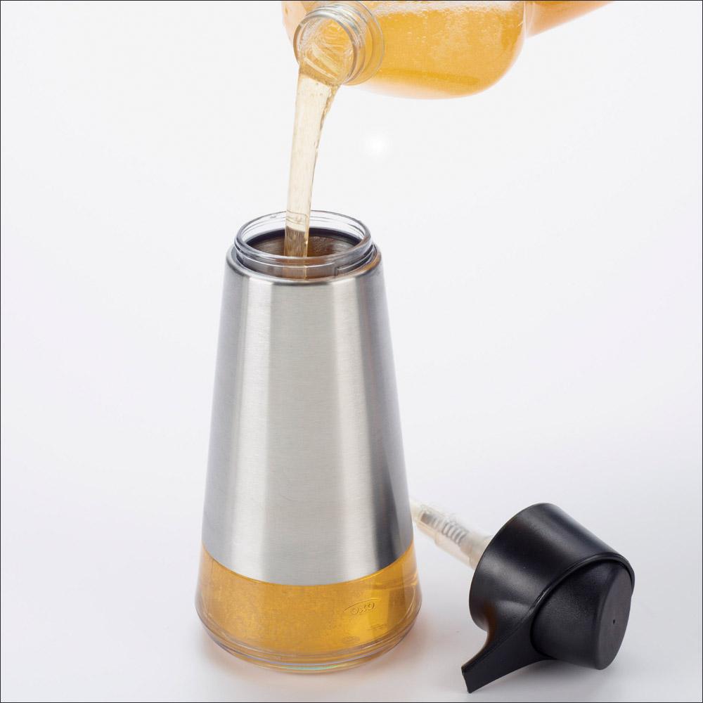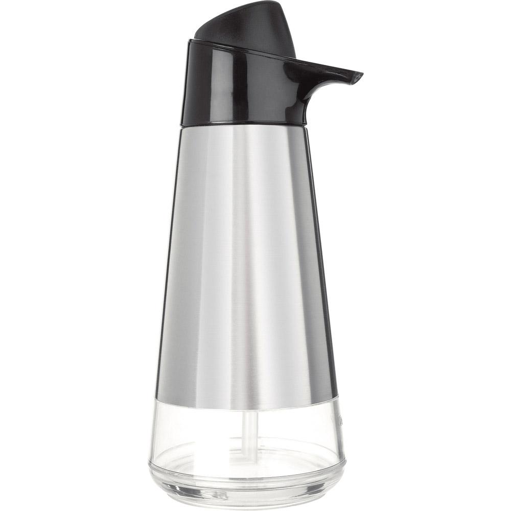 A one-handed press of the non-slip top button squirts hand soap, lotion or dish soap. The extended spout easily dispenses onto a sponge or directly into the sink. A non-slip foot keeps it stable. 9" tall, 15-oz. capacity.