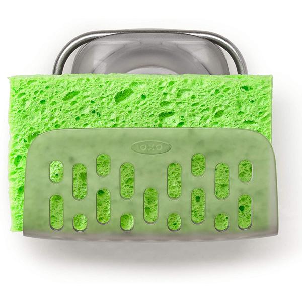 This sponge holder stays firmly in place on the side of your sink thanks to a lever-actuated suction cup. The stainless-steel holder easily detaches from the suction cup when you need more room to work in the sink. Dishwasher safe.