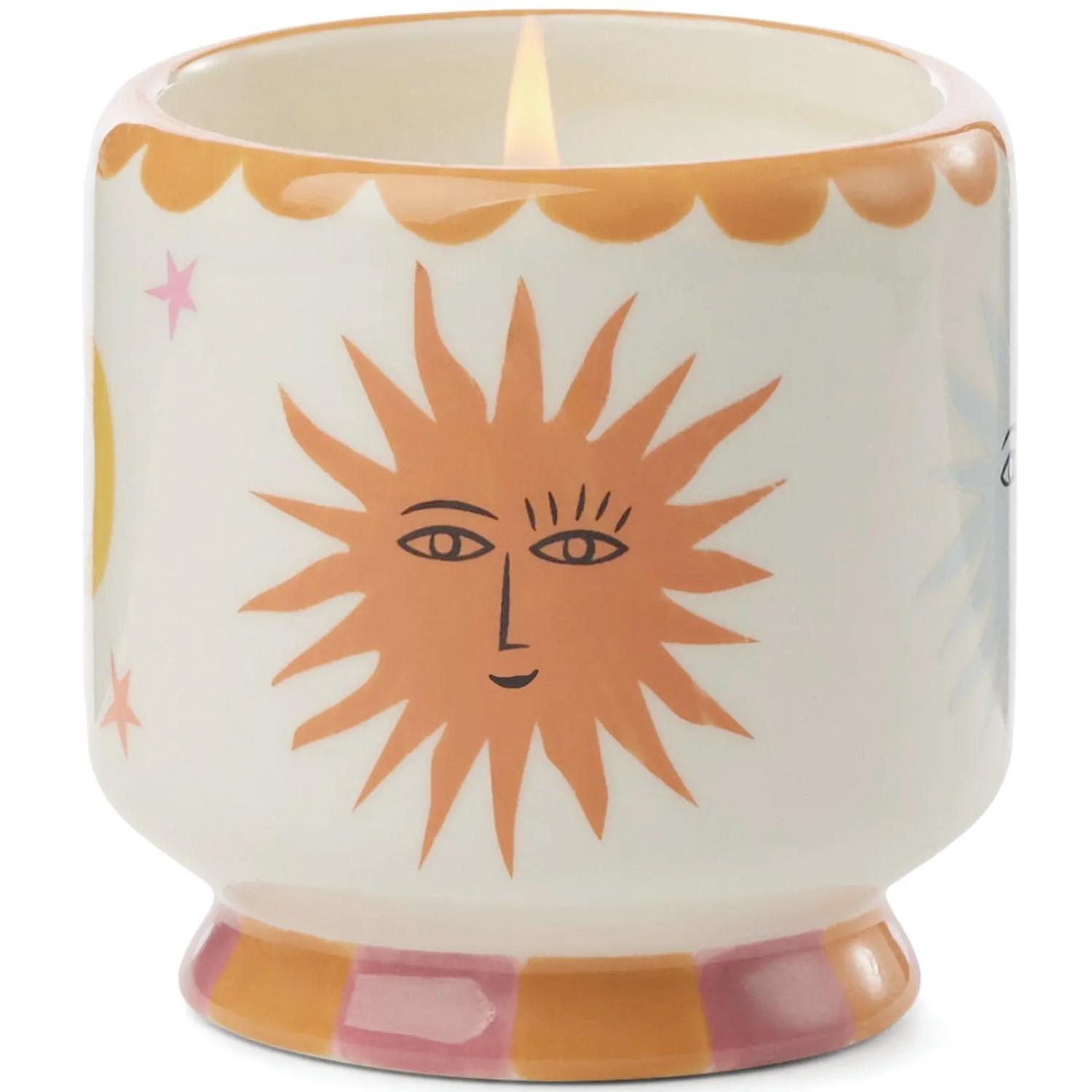 This beautiful 8-oz. ceramic candle features hand-painted details, pure soy wax and a bold fragrance. It features top notes of Bergamot, Orange Blossom, and Ylang; middle notes of Lilac, Petitgran, and Green Foliage; and base notes of Musk, Rosewood, and Muguet.