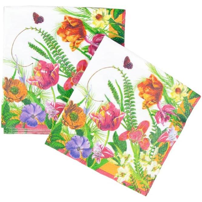 These colorful, three-ply paper napkins are soft and absorbent. They're made in Germany without chlorine bleach and are printed with water-based inks. Folded they measure 5" x 5"; fully opened, they measure 10"-square. Package of 20.