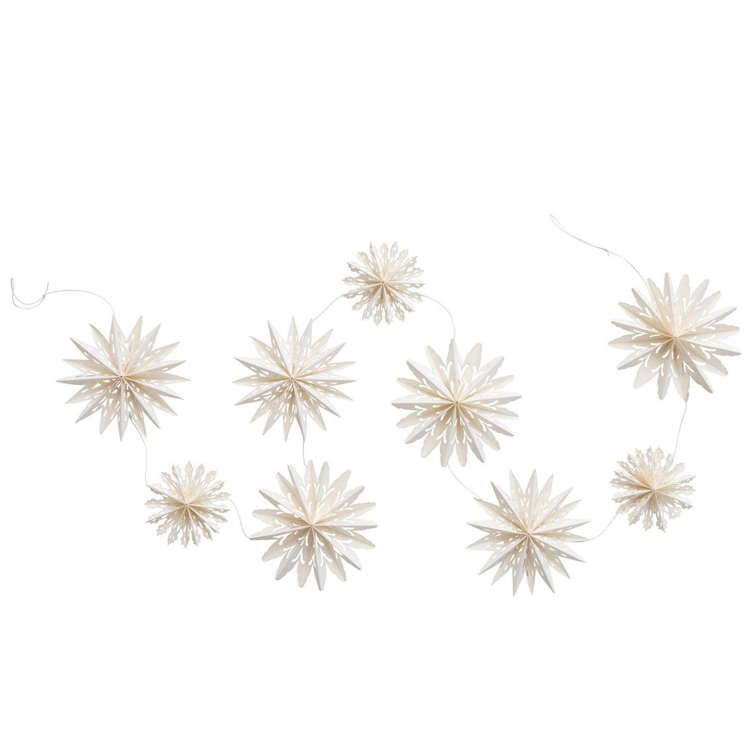Handmade 6” folding paper snowflakes adorn this 72”-long jute strand.