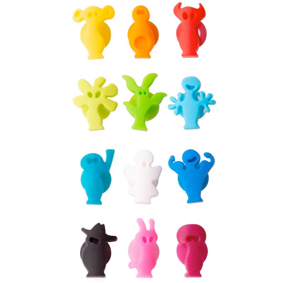 No more party confusion over whose drink is whose with these colorful little markers. Each of the 12 distinctive party characters features a suction cup so it will adhere to a glass all night long.