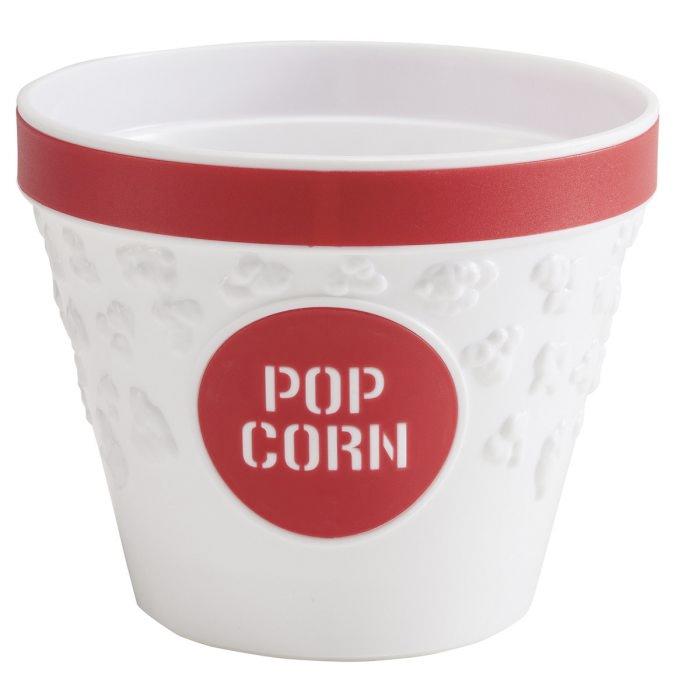 Shaped like the classic cardboard theatre bucket, this bucket is made from dishwasher-safe, BPA-free plastic. It has a capacity of 18 cups and features a removable insert that allows unpopped kernels to drop down to the bottom and out of reach.