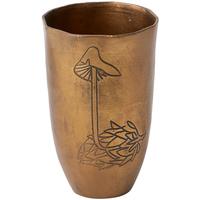 Fanciful mushrooms are etched on the metal Portobello vase that measures 3.5" in diameter and stands 5.25" tall.