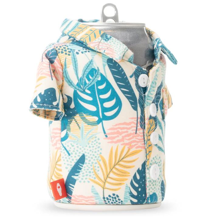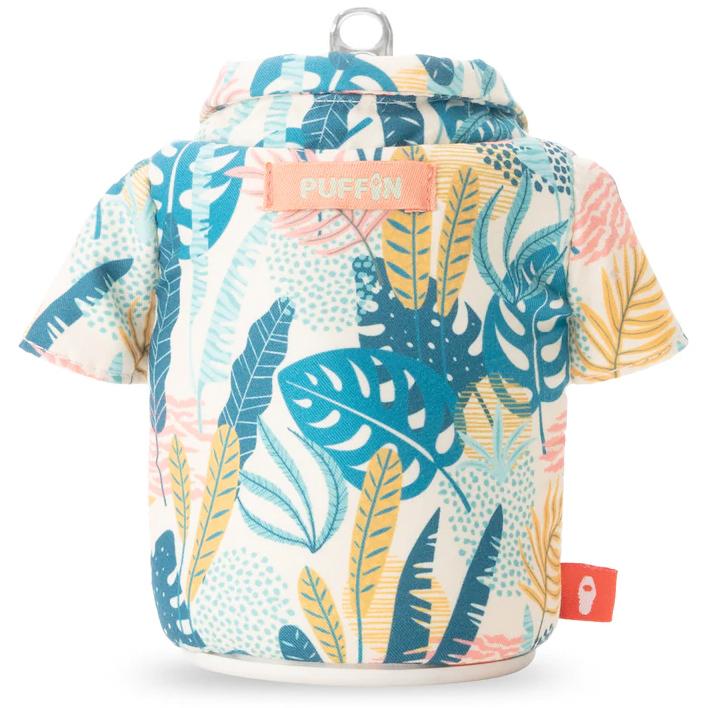 Don't let your cans go naked. Keep them cold and cozy with a piece of drinkwear from Puffin. This Hawaiian shirt can coozie features an insulated lining and a rubberized bottom to help your beverage drinkable longer. Plus, it looks great. Hand washable. Best fits 12-oz. cans.