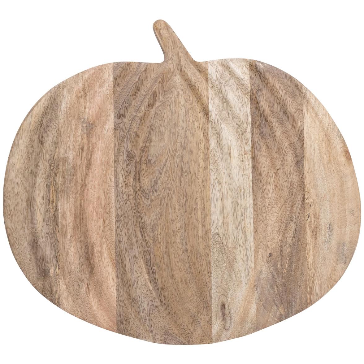 Ideal for both serving and cutting, this pumpkin-shaped board is made of solid mango wood and measures 15" x 11.25".
