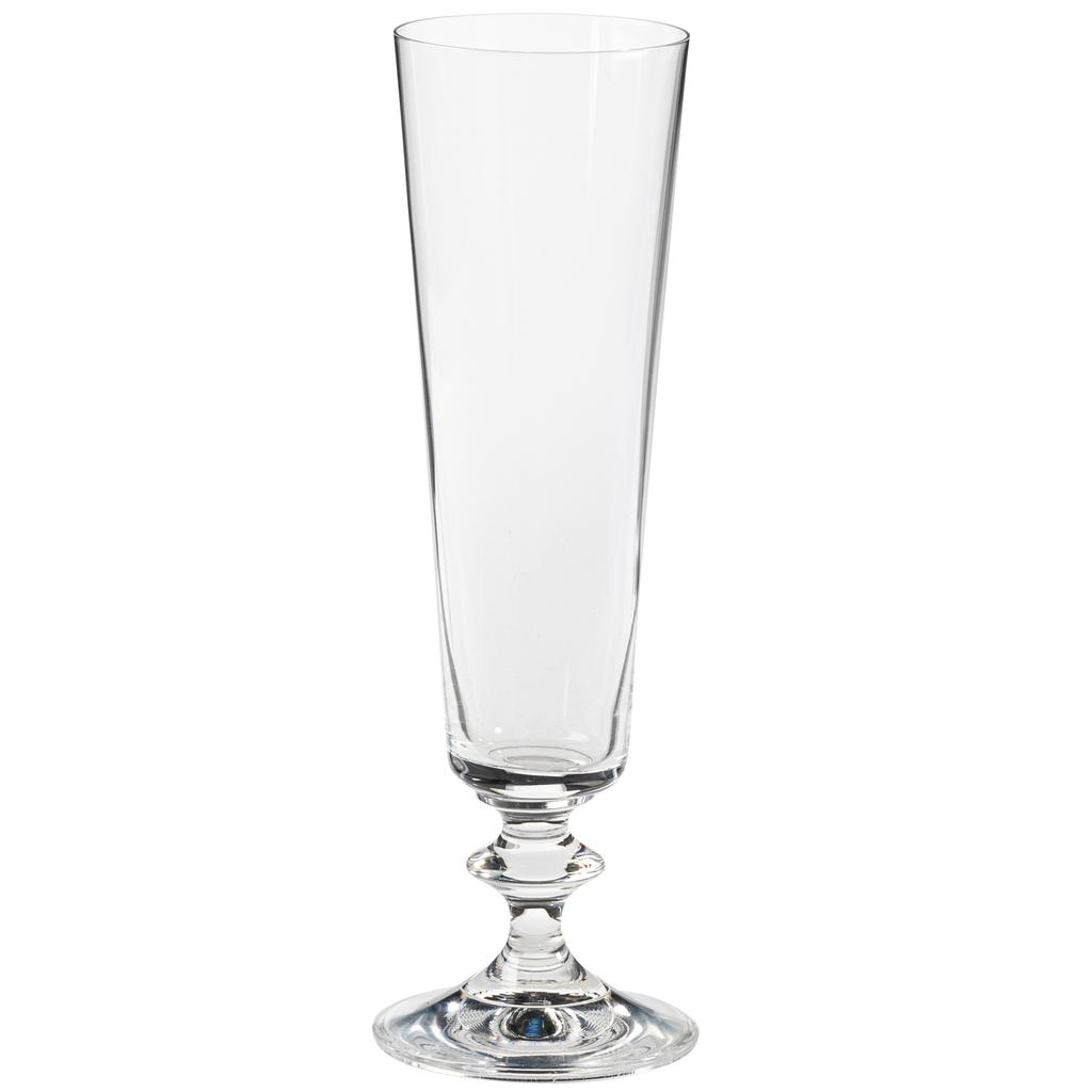 This beautiful flute features a bold, straight-line shape and a cut rim. It's made in the Czech Republic from sparkling lead-and-cadmium-free glass and has a capacity of 9-ozs. 8" tall.
