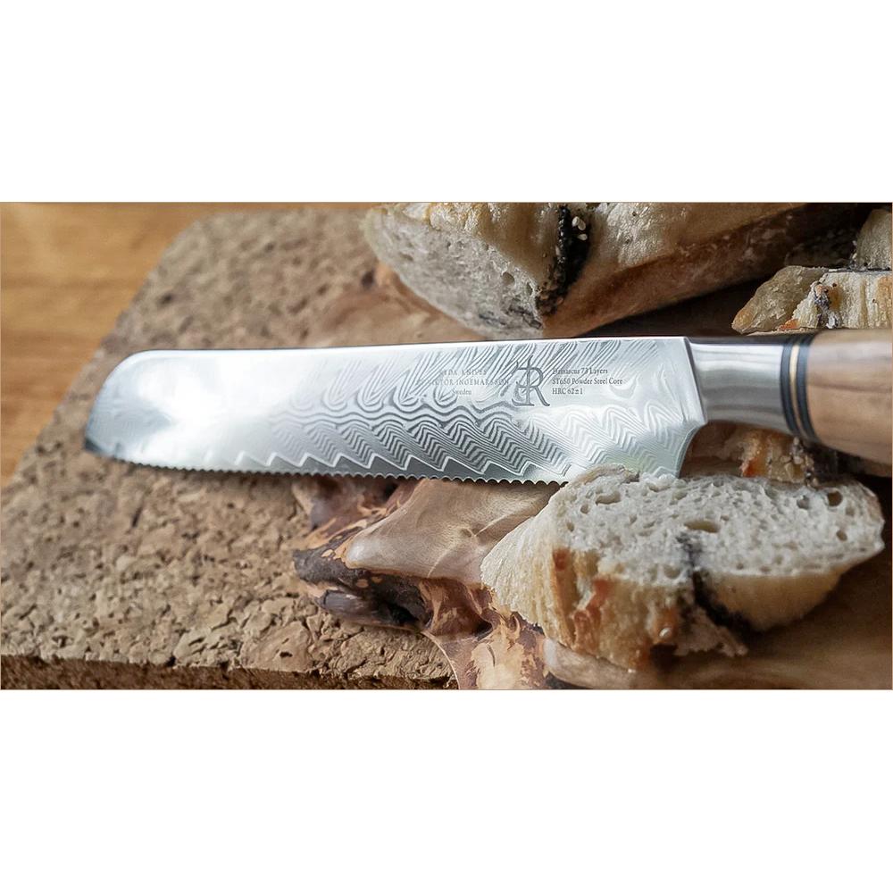 Designed to cut through crust without crushing the crumb, the ST650 bread knife features a finely tuned serrated edge that glides through sourdough, baguettes, and brioche alike—effortlessly and cleanly. Forged from cryo-hardened ST650 powder steel, it delivers strength, sharpness, and longevity in every slice.