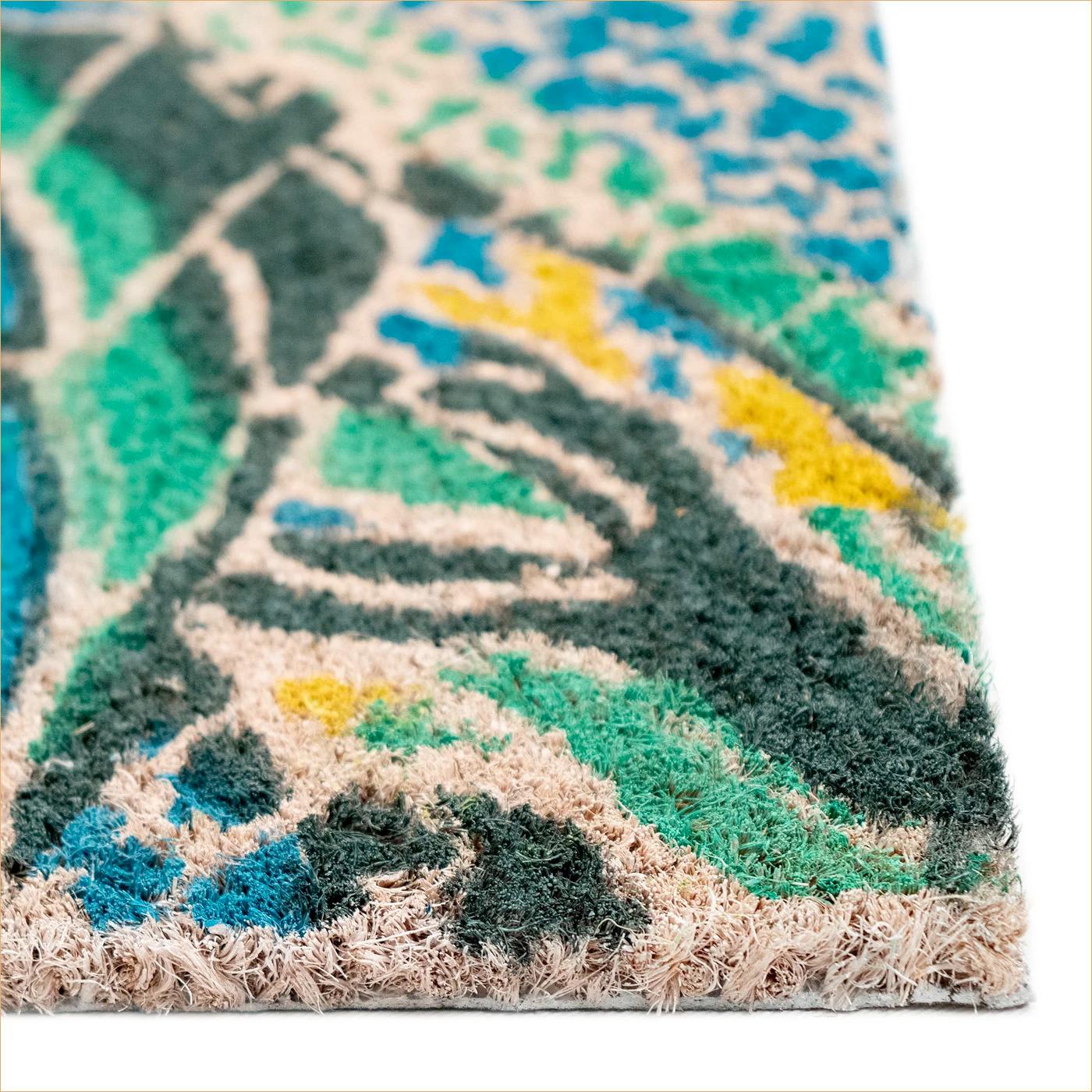 This charming doormat is made from coir fibers, an all-natural material known for its strength, extracted from the outer shell of coconuts. The mat features a durable vinyl backing and measures 18" x 30". You'll find that the stiff, durable coir fibers are perfect for wiping the mud and dirt from your shoes, Rain, moisture and sunlight will affect the life of a coir doormat.