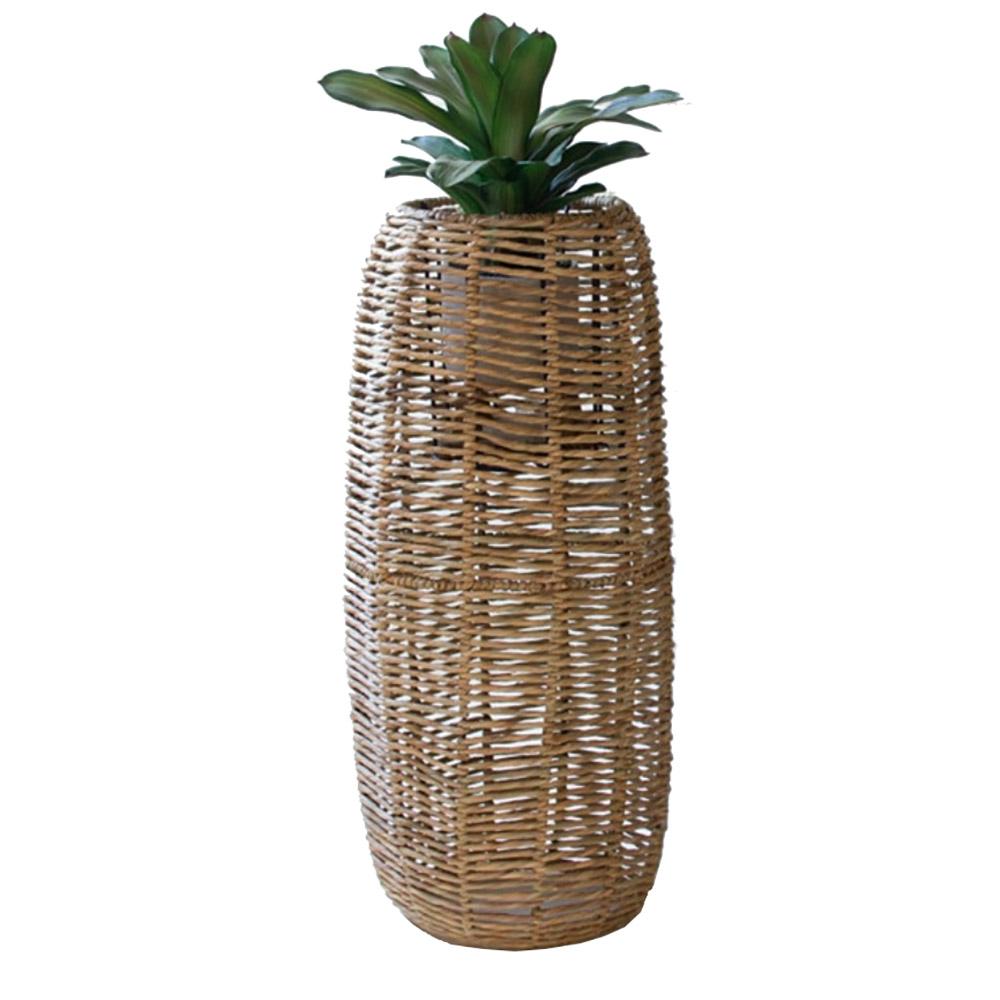 This Haitian-made woven seagrass barrel planter features internal metal ribs to hold a pot in place. 12” in diameter x 33” tall.