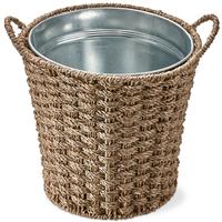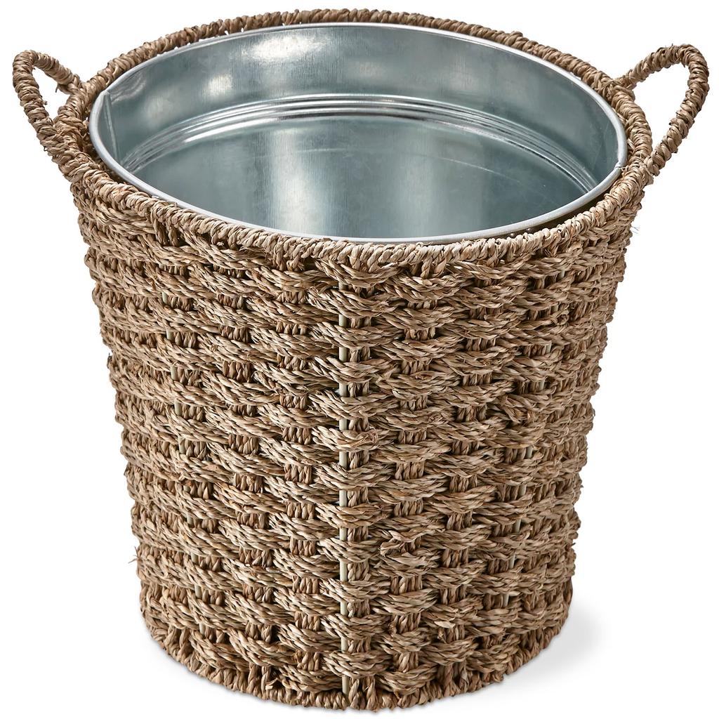 This summer party companion features a galvanized steel bucket inside a hand-woven, natural seagrass holder. It measures 10.1" in diameter, 9.6" high and features two sturdy handles for easy transport.