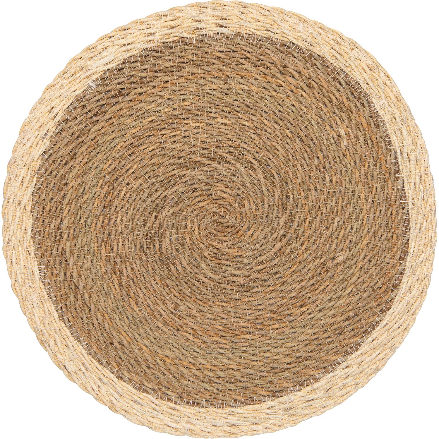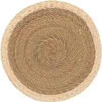Crafted from natural seagrass with a dyed rim, this earthy placemat measures 14.5” in diameter. Spot clean only.