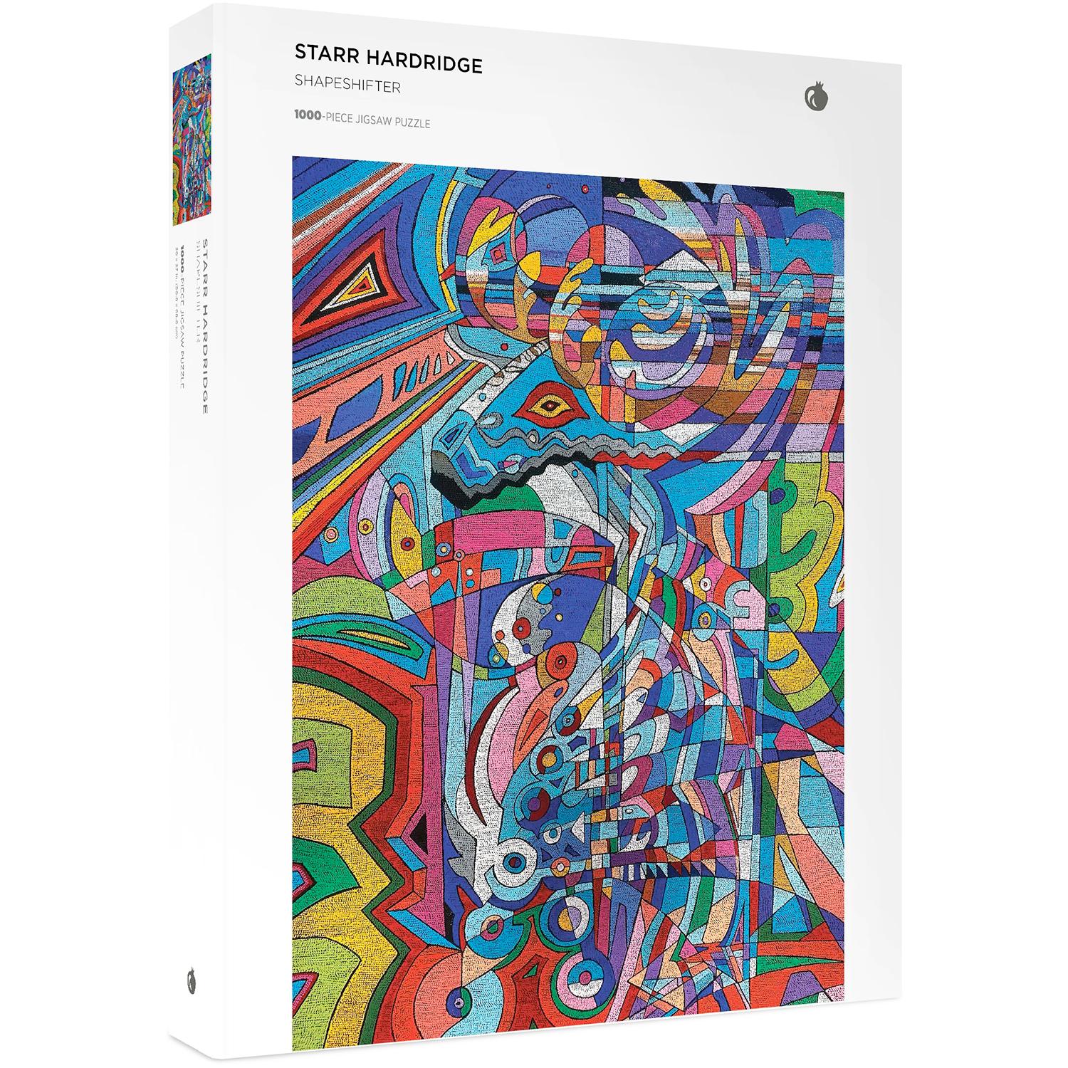 With his mastery of color and geometry, Starr Hardridge creates paintings inspired by humanity’s struggle for balance within nature, as well as Muscogee Creek mythology and values. Printed on high-quality matte art paper for superior color, crisp details, and no glare, with a base of ribbon-cut, recycled board for snug fit and minimal dust. When completed, the 1,000-pc. puzzle measures 27” x 20”.