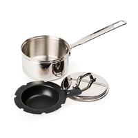 Made of durable 18-8 stainless steel, this pan holds a nonstick poaching insert that cooks one egg at a time. The insert features a non-stick surface, so eggs slide right out. The pan measures 4.5" in diameter, and all the pieces are dishwasher safe.