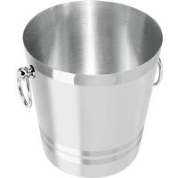 Add some swank to your next party with this champagne bucket that's inspired by classic French design and executed in gleaming stainless steel. Wherever you're entertaining, this 4-qt. ice bucket has room to accommodate any 750ml champagne or wine bottle, as well as space for plenty of ice to keep your fizz nicely chilled. Manufactured from heavy gauge stainless steel, with precision-machined zinc alloy handles, the bucket is fnished with a two-tone satin exterior and mirror-polished accents. Hand wash with soap and water. 7.75" in diameter and 7.75" high.