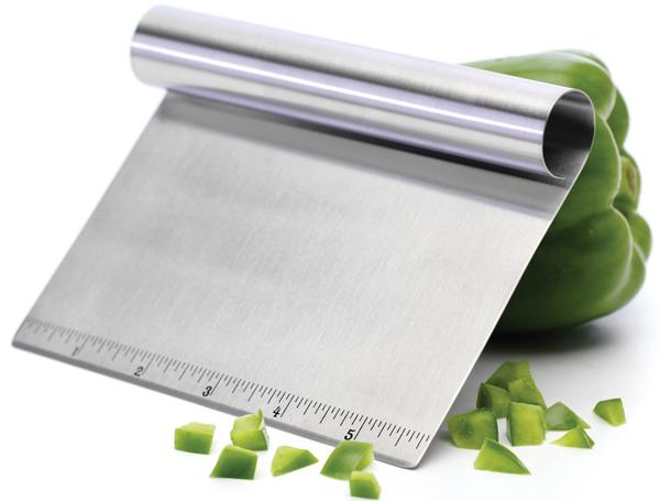 Scrape your cutting board clean and scoop chopped ingredients into a bowl or pan with this rugged stainless scraper. It's equipped with measuring marks, so you can measure your rolled pastry dough, too.