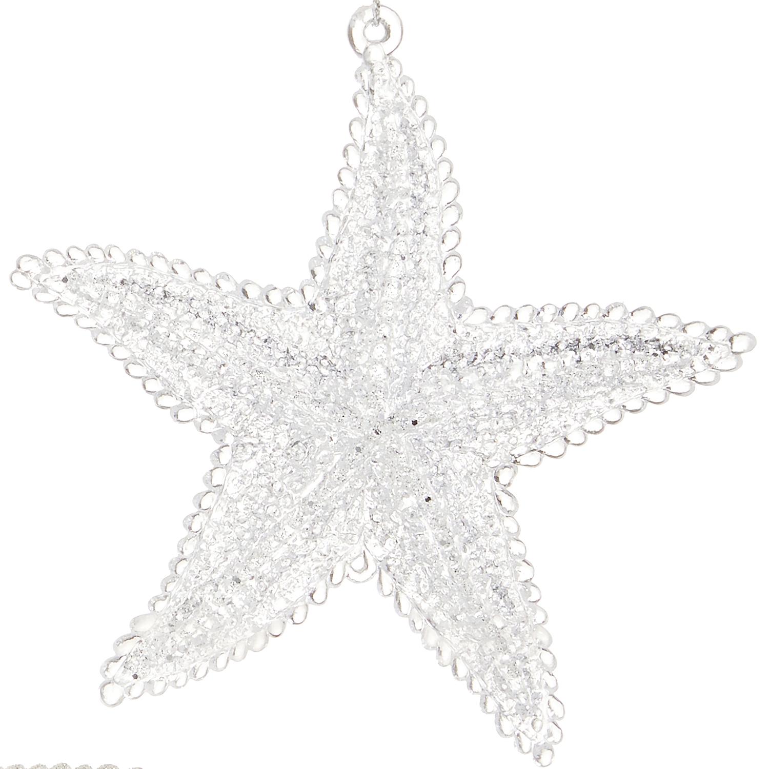 Choose from two styles of silvery starfish, each measuring 4.5” across and complete with cord for hanging. Priced and sold individually; please specify your choices in the Order Notes field in your shopping cart.