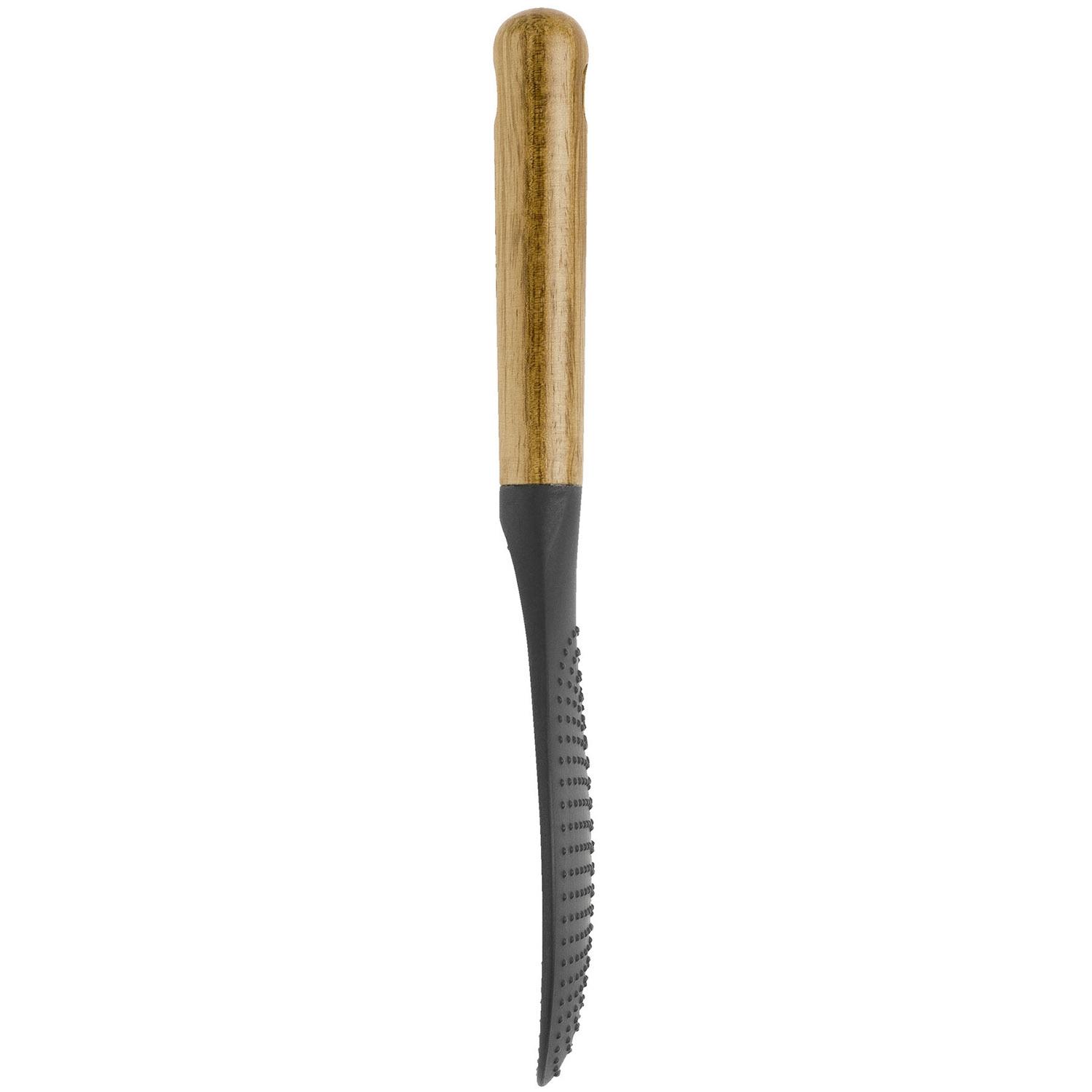 Staub utensils, as you should expect, are superbly designed and made. They feature eco-friendly, stay-cool acacia wood handles and heads made of matte-black silicone. The flexible silicone is impervious to stains and safe to use in hot pans, and is perfect for use in non-stick cookware. The heads are designed to fit in most any pot, pan or bowl. Hand wash, due to the wood handle.