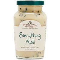 Featuring a creamy, mayo-like base plus a crunchy mix of black sesame seeds, dried onions, dried garlic and sea salt, this aioli is everything on a BLT, salmon burger or wrap. 10-oz. jar.