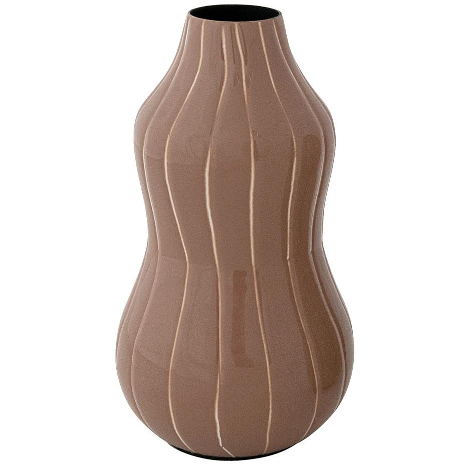 Featuring a graceful, curvaceous shape and a shiny enamel finish, this metal vase measures 3” in diameter and 5.25” tall.