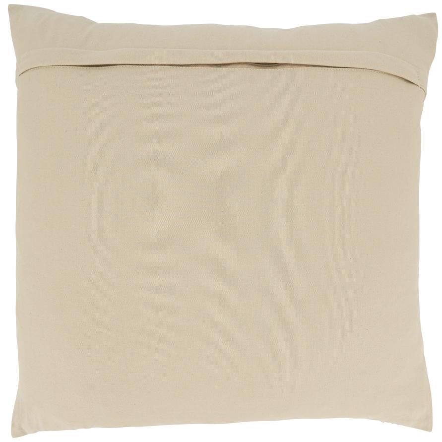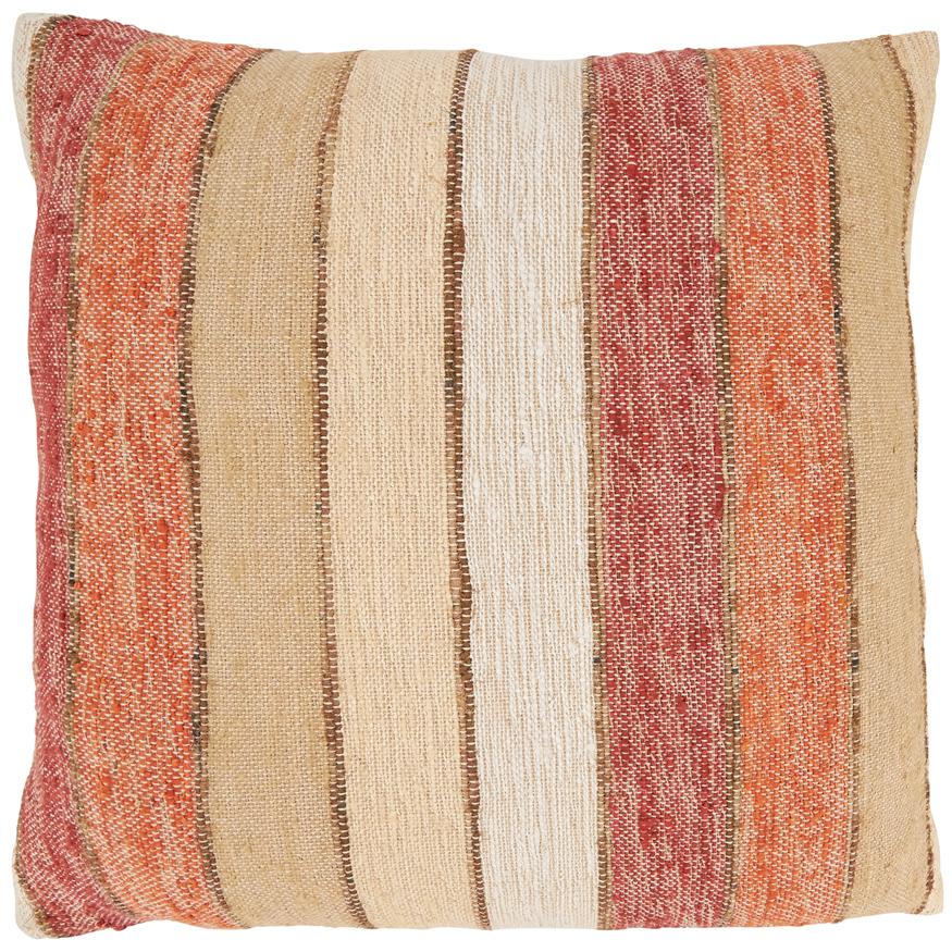 Featuring a boldly striped, removable, 100%-cotton cover, this pillow measures 20” square.
