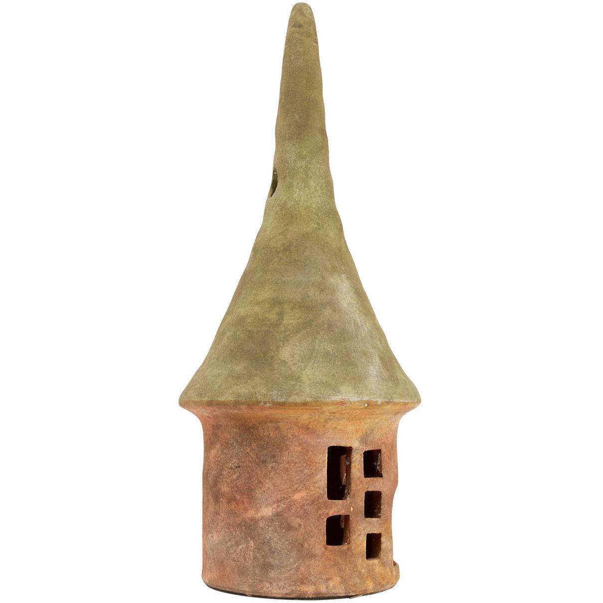 Put it in your garden, put it on a table in your home; wherever it goes, this whimsical, terra-cotta toad house will put a smile on your face. It measures 7.5" in diameter and 18.25" tall.