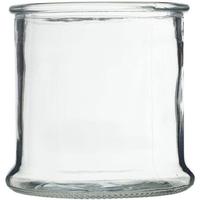 This classic glass vase measures 5" in diameter and 4.75" tall.